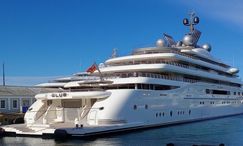Superyacht ve výši 600 milionů dolarů ModrýVlastní Sheikh Mansour bin Zayed Al Nahyan z Spojené arabské emirátyAktuální majitel šampionů Premier League Manchester Citybyl spatřen z pobřeží Řecko Kalamatav pondělí.