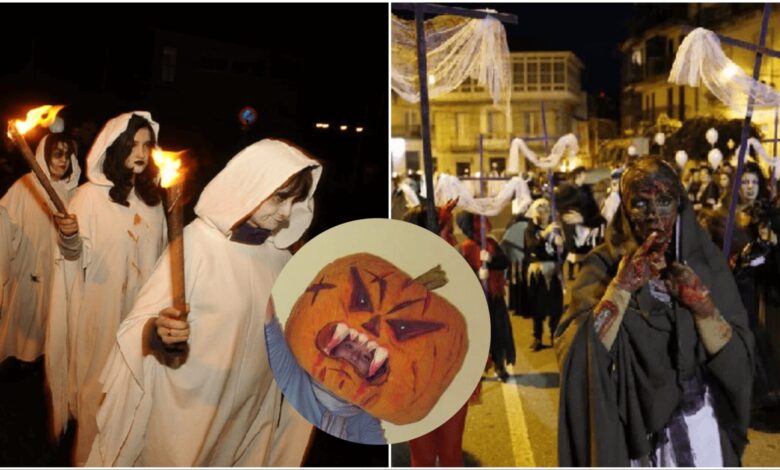 V Cedeira vesničané soutěží ve vyřezávání dýní a soutěžích kostýmů, zatímco v Ribadavii vzdává stinný průvod hold strašidelné Santa Compaña a nejstatečnější duše mohou čelit svému strachu v mrazivém „tunelu teroru“.