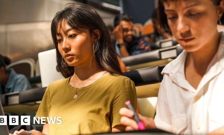 BBC / Hope RhodesCelkově neexistuje žádný limit na počet univerzitních míst v Anglii, kromě několika regulovaných kurzů, jako je medicína.