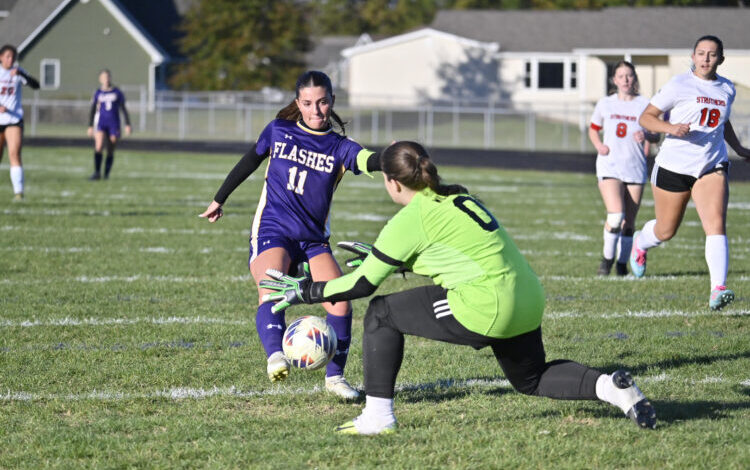 Dvojice gólů z prvního poločasu od Graysona Knoskeho udala tón Golden Flashes při vítězství 8:0 nad Struthers v turnajovém zápase Division IV, Northeast 4.