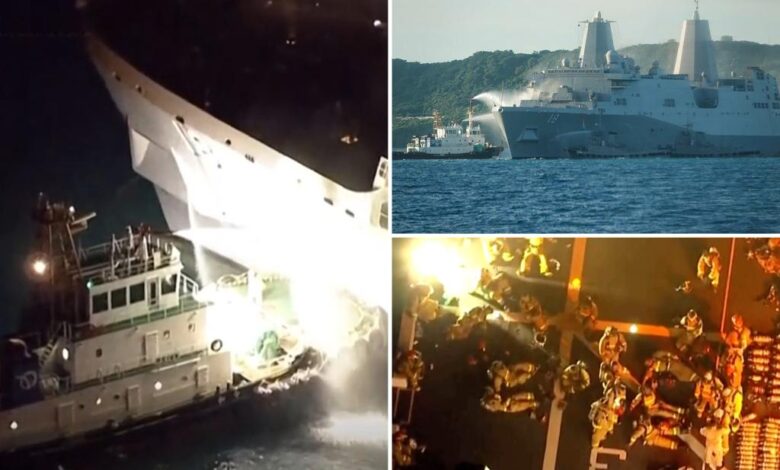 Ve středu vypukl oheň na válečné lodi USS New Orleans u pobřeží Okinawa v Japonsku a nechal dva námořníky s menšími zraněními.