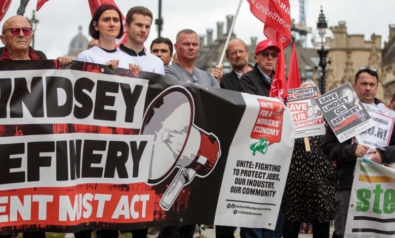 Pracovníci cestovali na konferenci Labour Party v Liverpoolu, aby se odvolali k pomoci při zachrážení rafinérie.
