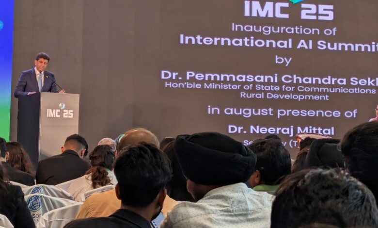 Systémy výstrah poháněných AI ušetřily během pěti lakhů během povodňových povodňů v roce 2024, uvedla Dr. Pemmasani Chandra Sekhar, MOS, komunikace při oslovení mezinárodního summitu AI během probíhajícího India Mobile Congress (IMC) 2025 v New Delhi, New Delhi, ve čtvrtek (9. října 2025).