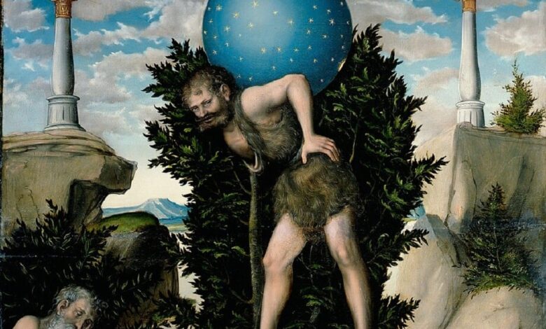 Jak se drželo nebe podle Řecká mytologie? slavně, Atlas Titána musel to držet jako součást trestu od bohů. Obvykle ho starověké a moderní obrazy zobrazují, jak balancuje na pažích nebo ramenou. Existují však důkazy, že první Řekové si původně představovali, že Atlas drží oblohu pomocí mytologických pilířů nebe.