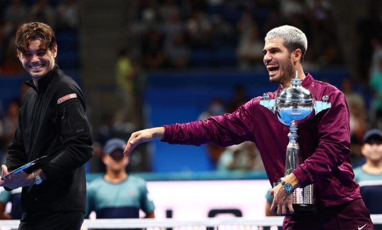 Finále v Tokiu bylo pro Alcaraz devátý přímo od března, kdy prohrál v kole 64 v Miami Masters. V těchto finálech je 7-2, jeden z nich ve Wimbledonu k Jannikovi Sinnerovi.