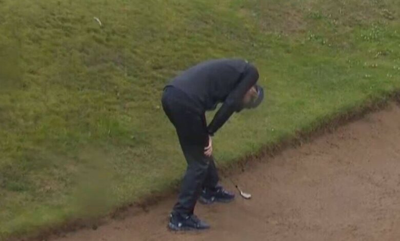 Obraz jednoho z nejlepších britských sportovců se chvěl při omylu golfů v bunkru pobavení a diváci se v tuto chvíli sdíleli.
