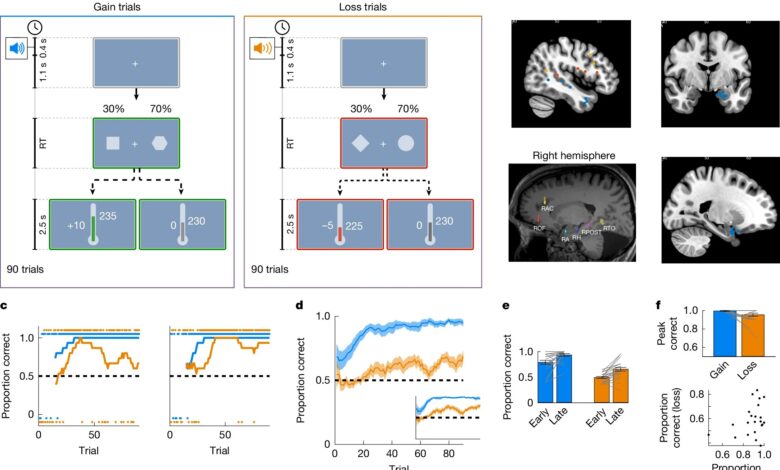 Paradigma a chování učení při ztrátě versus podmínky zisku. Kredit: Příroda (2025). Dva: 10.1038/S41586-025-09466-1
