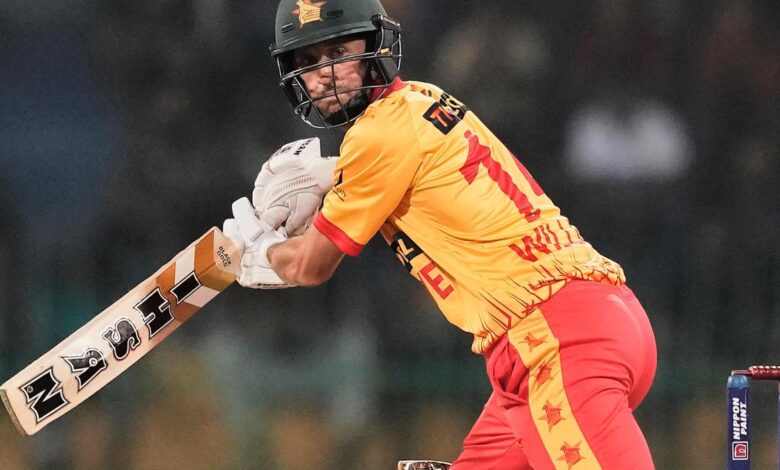 Sean Williams ze Zimbabwe hraje ránu během prvního kriketového zápasu Twenty20 mezi Srí Lankou a Zimbabwe v Colombu, Srí Lanka, 14. ledna 2024. | Fotografický kredit: AP