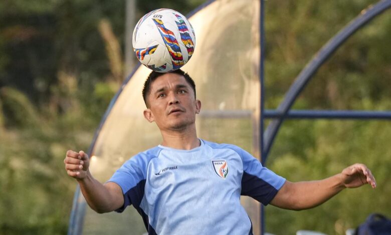 Mužský národní fotbalový tým Sunil Chhetri. | Fotografický kredit: PTI