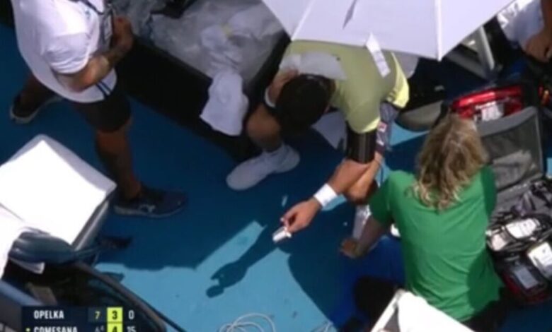 Opelka bojovala k vítězství 7-6 v úvodním setu, než Comesana převzal kontrolu nad druhou sadou tím, že se vrhla do vedení 4-3 (15-0). Když se však 24-letý připravoval sloužit 24-letý, rychle se vypukly znepokojivé znamení.