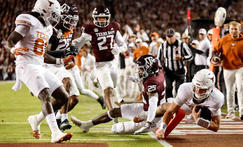 Texas překonal Texas A&M v loňské rivalitě, když Longhorns vyhráli 17-7 a Arch Manning měl rychlý TD. (Tim Warner/Getty Images)