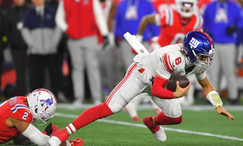 FOXBOROUGH, Mass. (AP) – Návrat Jaxsona Darta do sestavy New York Giants moc jiskry nepřinesl, i když nováček rozehrávač měl blízko k tomu, aby se tvrdě naučil cennou lekci. V první čtvrtině pondělní prohry 33:15 s New England Patriots se Dart vyškrábal z kapsy (…)