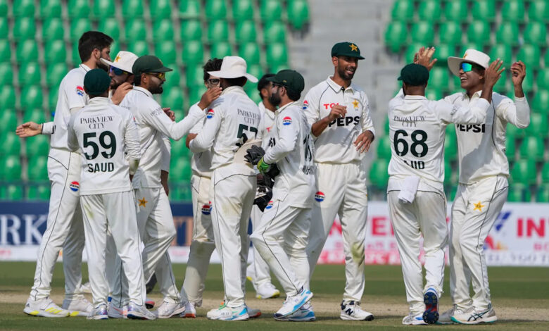 Pákistánští odpalovači nejvyššího pořadí byli mezi koly poté, co hostitelé vyhráli velmi důležitý los v Láhauru s kapitánem Shanem Masoodem, Imam-ul-Haqem, Mohammadem Rizwanem a Salmanem Ali Aghom, kteří zasáhli smysluplná půlstoletí v silném skóre 378 v prvních směnách.