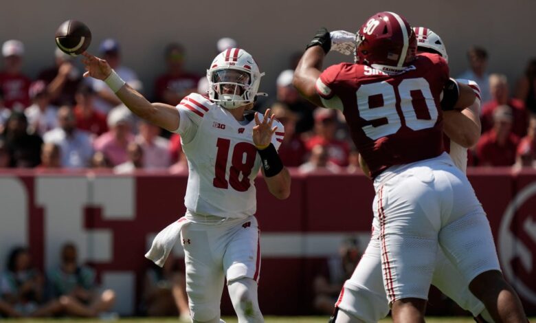 Fotbal Alabama SS Bray Hubbard rozkládá výběry kariéry vs. Wisconsin
