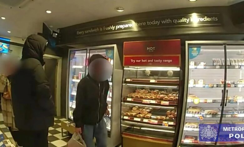 Mezitím Met vydal dramatické nové záběry, které ukazují, že podezřelí sprinting z obchodů svírajících lahve, sendviče a občerstvení v rámci širšího zásahu proti opakovaným maloobchodním pachatelům.