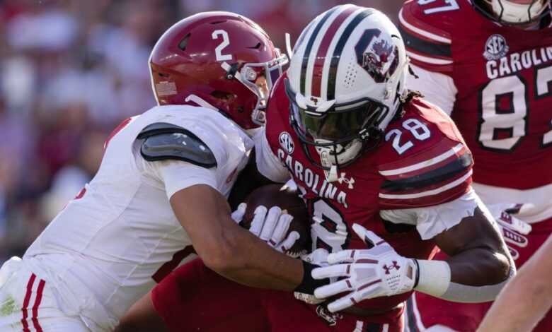 Alabama: The Crimson Tide překvapivě bojovali s míčem proti Gamecockům a získali 72 yardů při 23 přenosech – většina z nich přišla ve čtvrtém čtvrtletí. „Je těžké vyhrát SEC, těžké vyhrát na silnici,“ řekl Simpson. „Je to tak skvělé odolné vítězství od kluků, člověče. Prostě super hrdý na tým.“