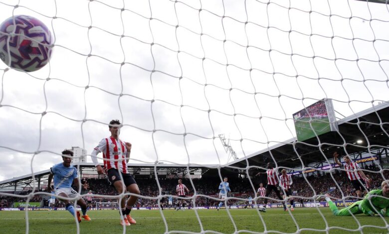 Michael Kayode vedl poloviční šanci nad barem pro hostitele a když zápisy tikaly dolů Guardiolou, který zaznamenal své 250. vítězství Premier League pro město, vypadal stále více rozrušeně na dotykové lince, protože Brentfordův přímý styl způsobil jeho obranu v jeho obraně.