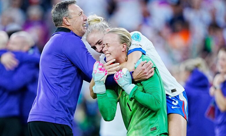 Hampton byl Hrdina vítězství v Anglii nad Španělskem V nedělním finále, když zachránila dva tresty, aby zřídila Chloe Kelly, aby zapečetila slávu pro lvice.