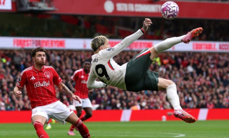 Alejandro Garnacho se pokouší o kop na kole. (Obrázek: Getty.)