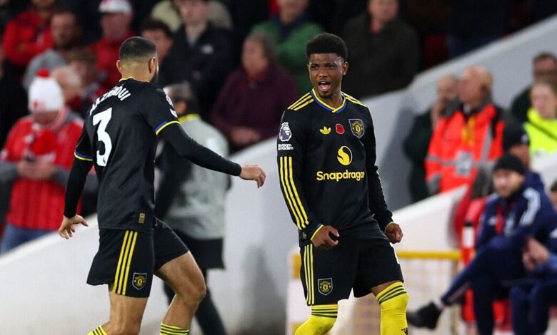 Tým portugalského bosse se dostal do vedení Casemiro a šel do poločasu s vedením. Však, Seana Dycheho strana otočila zápas na hlavu, když Morgan Gibbs-White a Nicolo Savona skórovali během prvních pěti minut druhého poločasu. The Reds byli na pokraji porážky, dokud se Amad nezvýšil a vstřelil ohromující vyrovnání v pouhých devíti minutách a urval pro Reds remízu 2:2. Zde je návod, jak si hráči United vedli na City Ground:.