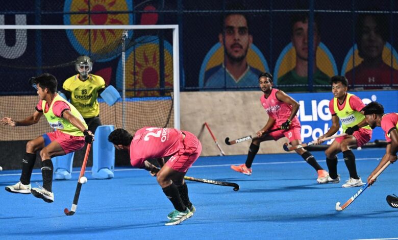 Indický mužský hokejový tým během tréninku. | Fotografický kredit: B. JOTHI RAMALINGAM