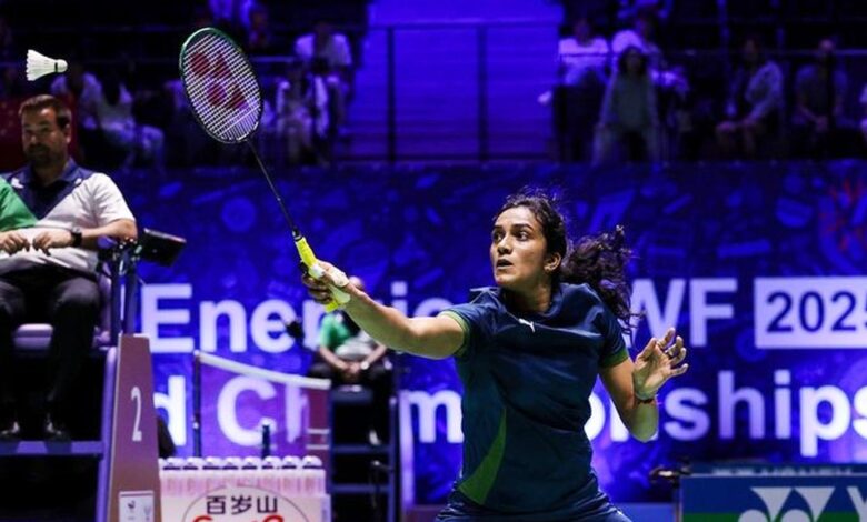 Soubor obrázek PV Sindhu v akci. | Foto kredit: Ani