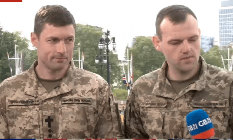 Sledujte jako dva ukrajinští vojáci, kteří se budou účastnit vítězství v Evropě (VE) Denní památky, hovoří s Stephenem Dixonem a Ellie Costello o GB News.