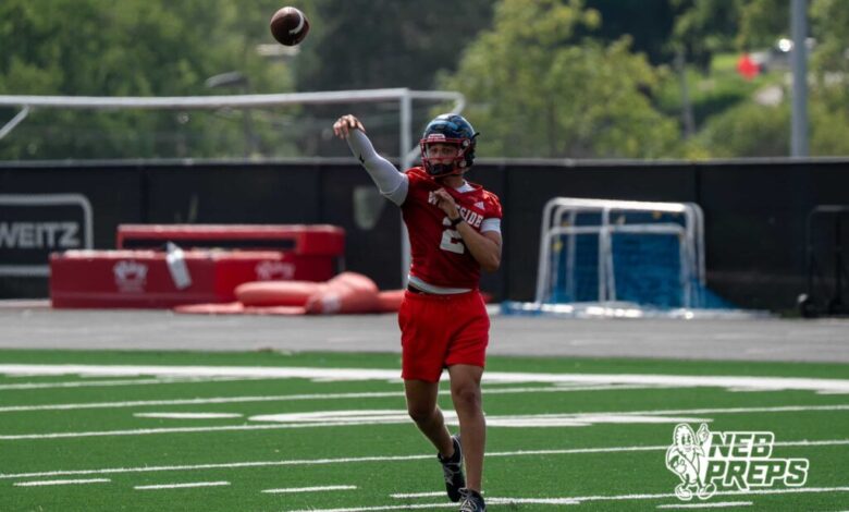 Braylen Warren hodí během Westside fotbalové trénink v úterý 12. srpna 2025 v Omaha Nebraska. Foto Brandon Tiedemann.