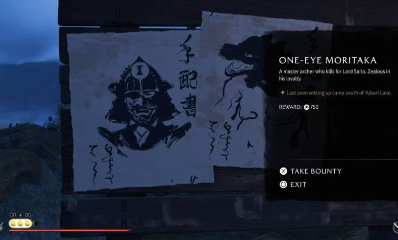 The One-Eye Moritaka Bounty v Duch Yotei je jednou z prvních odměn, které můžete převzít, a slouží jako dobrý úvod k tomu, jak ve hře fungují lovy Bounty. Zjistíte, že je zveřejněna hned na desce Huranui’s Rest Inn Bounty Board, takže není třeba jej odemknout prostřednictvím pokroku příběhu.