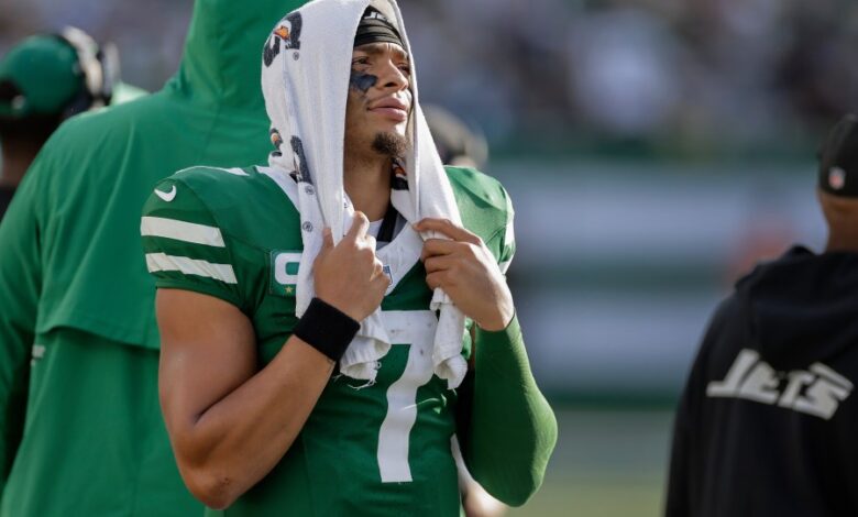 Fields byl jen 9 ze 17 na 45 yardů a devětkrát prohrál při prohře Jets 13:11 s Denverem minulou neděli v Londýně, kdy měl New York nejhorší franšízu minus 10 čistých yardů.