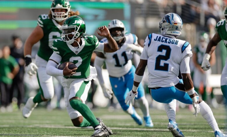 Po týdnu, během kterého trenér Aaron Glenn odmítl veřejně oznámit svého startéra, se situace zjevně stala diskutabilní, když byl Tyrod Taylor v sobotu vyloučen se zraněním kolena, řekla tato osoba agentuře AP pod podmínkou anonymity, protože Jets neučinili žádné oznámení.