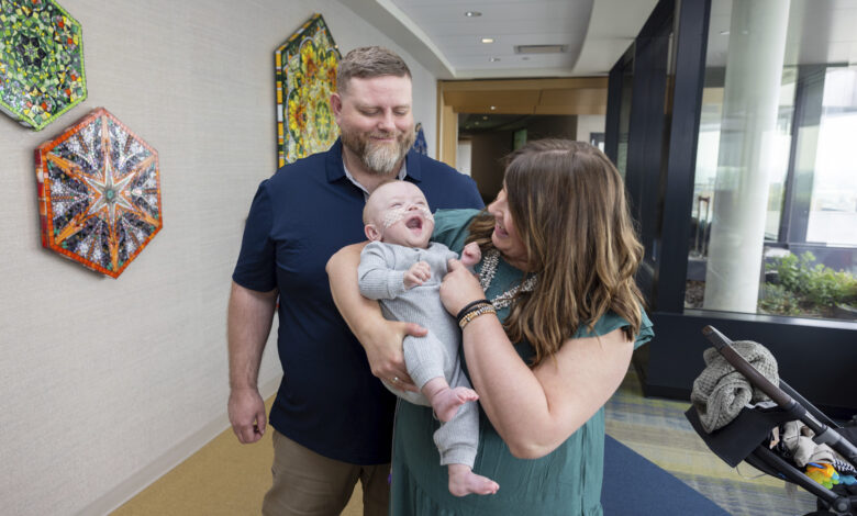 V tomto 2. srpnu 2024, fotografie poskytnutá Mollie a Randall Keen, je Mollie viděna drží svého syna Nash na University of Iowa Health Care Family Children’s Hospital v Iowa City v Iowě. Kredit: Mollie a Randall Keen přes AP