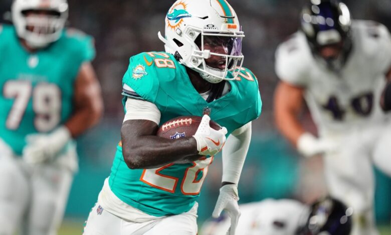 Dolphins (2-7) překonali Ravens o 226 yardů na 109 a drželi je na 1 ze 6 na třetím místě v prvním poločase, ale Miami skončilo 14-6 kvůli spoustě chyb.