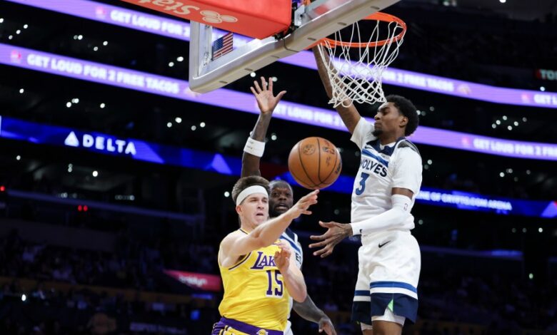 Anthony Edwards nastřílel 31 bodů a Julius Randle jich měl 26 za Minnesotu, což nedokázalo zpomalit ofenzívu Lakers v odvetě série prvního kola play off minulé sezóny, kterou Wolves vyhráli v pěti zápasech.