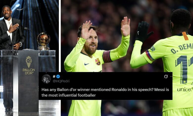 Fanoušci se zaměřili na kopání na Cristiano Ronaldo Po roce 2025 vítěz Ballon d’Or Ousmane Dembele poděkoval Lionelovi Messimu v jeho projevu přijetí ceny. Pařížský Saint-Germain vpřed porazil Lamine Yamal na vyhledávanou cenu, přičemž teenager skončil na druhém místě v závodě.