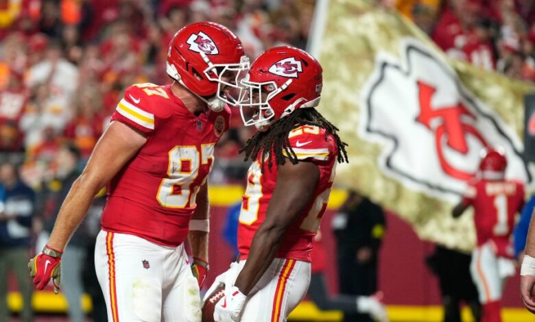 Mahomes byl téměř dokonalý poté, co hodil dva rané zásahy, z nichž jeden byl stěží jeho chyba. Jedna z jeho touchdownových přihrávek patřila dobrému kamarádovi Travisi Kelcemu, který mu dal 83 bodů, aby vyrovnal Priest Holmes v kariérním rekordu Chiefs, a další dostal Rashee Rice, který ve svém druhém zápase po šestizápasové suspendaci NFL chytil devět přihrávek na 93 yardů.