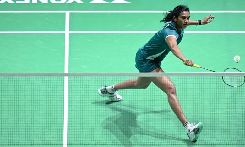 Sindhu uhrála bod během semifinálového zápasu dvouhry žen proti Číňance Wang Zhi Yi na badmintonovém turnaji Malaysia Open v Kuala Lumpur 10. ledna 2026. | Fotografický kredit: AFP