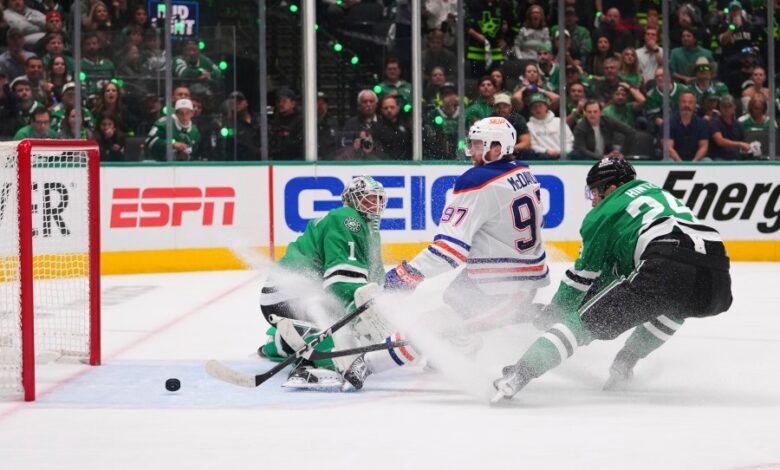 McDavid dostal tento velký gól ve druhém období po dřívější asistenci, čtyřicetiletý Corey Perry skóroval znovu a Oilers jdou do svého druhého finále Stanley Cupu v řadě poté, co ve čtvrtek večer ve hře 5 porazili Dallas Stars 6-3, aby zabalili západní finále.