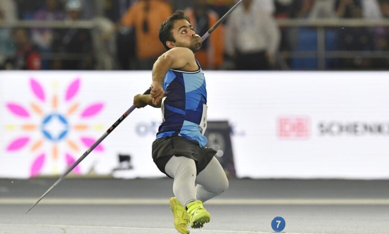 Paris Paralympics Gold Medailist Navdeep Singh vzal stříbro v kategorii mužů oštěpu F41 na mistrovství světa v Para atletice v Novém Dillí v neděli. | Foto kredit: Shiv Kumar Pushpakar