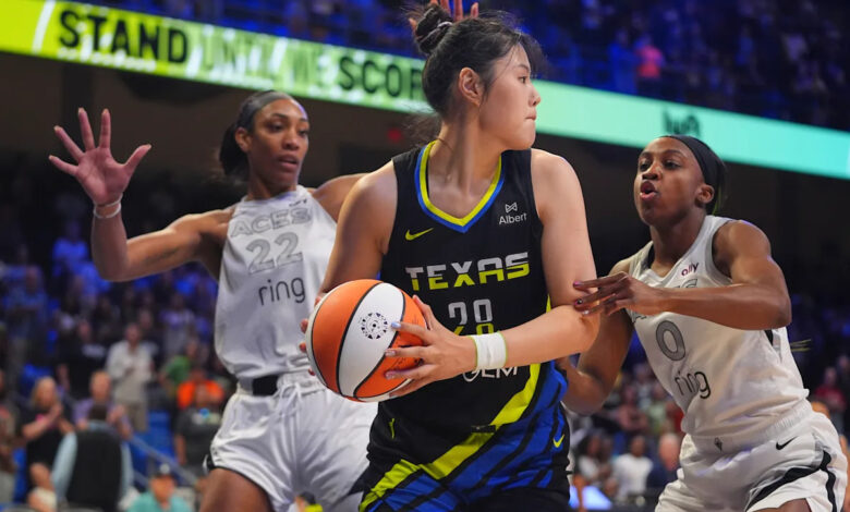 A’ja Wilson skóroval 14 bodů s 10 doskoky a sedmi asistencemi pro Las Vegas (13-13), který vyštěkl dvouhry prohry. Nalyssa Smith získala 11 bodů.