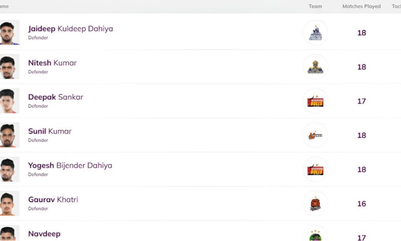 Kapitán Haryana Steelers Jaideep Dahiya skončil po ligové fázi jako nejlepší obránce. Svou první pozici si udržel se ziskem 67 bodů. Nitesh Kumar zůstal na druhém místě s 65 body.