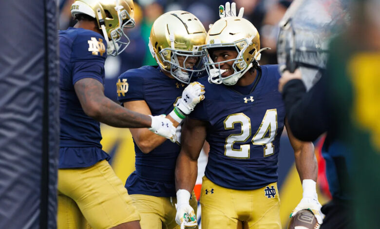 Notre Dame fotbal bude na hřišti pro naposledy během základní sezóny 2025jak cestuje na noční soutěž ve Stanfordu Kardinál.