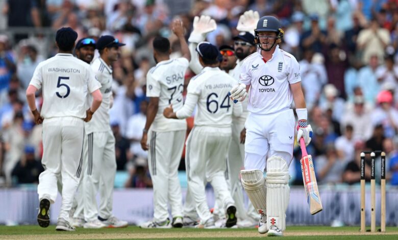 Indie Pacer Mohammed Siraj Druhý branka směn si zabalil, když odstranil anglický kapitán Ollie Pope ve 4. den (neděle 3. srpna) pátého testu Anderson-Tendulkar Trophy. Kennington Oval v Londýně hraje hostitele zápasu.