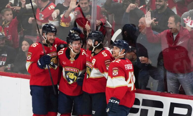 SUNRISE, Fla. (AP)-Bylo to svázáno 1-1 do třetího období. Proměnilo se to na vypuknutí. A po pěti bralích, jeden jako nikdo jiný v historii play-off na Floridě, Panthers vyhraje z jejich třetího po sobě jdoucího výletu do finále Stanley Cup.