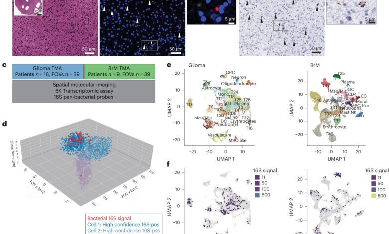 Bakteriální signály jsou detekovatelné u primárních a metastatických nádorů mozku. Kredit: Přírodní medicína (2025). DOI: 10.1038/s41591-025-03957-4