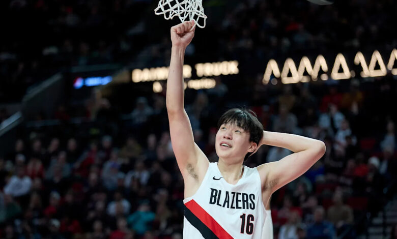 Portlandský centr Yang Hansen si v děsivé hře proti Warriors nechtěně vzal koleno na zátylek