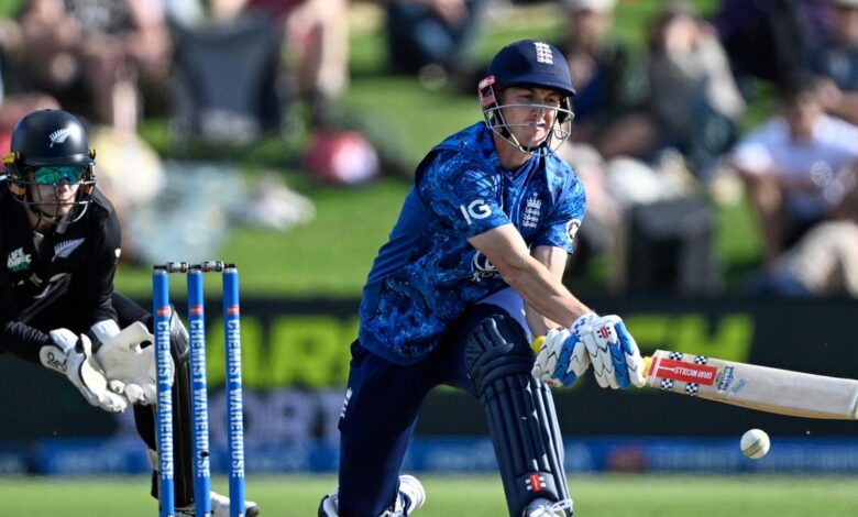 Úchvatný Harry Brook nastřílel dechberoucích 135, aby zachránil Anglii ruměnec, protože turisté byli propuštěni za 223 v prvním jednodenním mezinárodním utkání proti Novému Zélandu v neděli (26. října 2025).