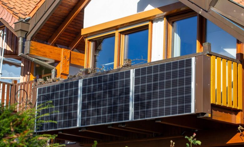 „Přenosná“ nebo „balkon“ sluneční energie obecně přicházejí v soupravách, které může nováček sestavit doma a zapojit se do již existujícího výstupu. Imago/Zuma