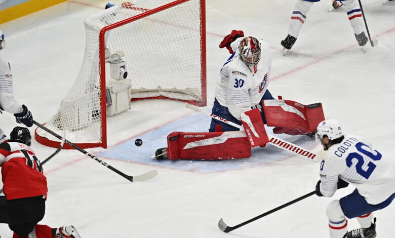 Marco Kasper, Vinzenz Rohrer a Ramon Schnetzer každý skóroval za Rakousko, aby skočil o 3-0 nahoru a nutil Francii nahradit brankáře Antoine Kellera s Quentinem Papillonem s 4:30, aby šel v prvním období ve Stockholmu.