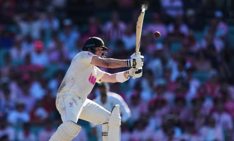 Australský Steve Smith pálky během hry třetího dne pátého a posledního kriketového testu Ashes proti Anglii v Sydney 6. ledna 2026. | Fotografický kredit: AP